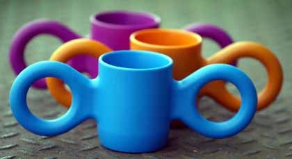 Además de un bonito diseño y coloridas, las tazas de desproporcionadas asas permiten que los niños dominen mejor el beber, tanto al cogerla como al controlar la inclinación del vaso.