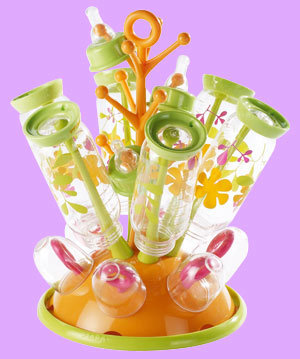 Recordaba haber visto en nuestras páginas un artilugio para recoger los accesorios de la alimentación del bebé, y ayer en una tienda de puericultura vi uno que me gustó especialmente por su diseño y colores.