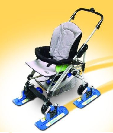 Nos ha sorprendido encontrar estos esquís para el cochecito de los niños, aunque es una buena idea, y útil para dos épocas del año.