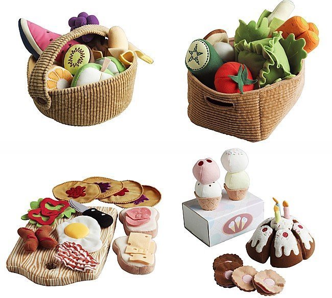 La tienda sueca ha lanzado cuatro simpáticos sets de comiditas compuestos por varios alimentos fabricados en tela, un material que me parece más adecuado que las típicas comiditas de plástico.