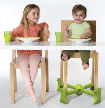 Se trata de Kaboost, un alzador plegable, extensible y regulable que se adapta a casi todos los modelos de sillas, basta con abrir sus “hélices” y ajustarlas a la medida de las patas de la silla, una ligera presión y la silla habrá crecido lo necesario para que nuestro pequeño se encuentre a la altura en la mesa.