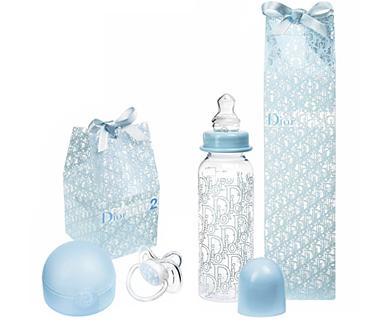 El mercado del lujo ha puesto su mira en los bebés y en los niños. Mejor dicho, la mira la ha puesto en los padres que consideran que su hijo es merecedor de vestir una prenda de marca o por ejemplo tomar la leche en un biberón Dior, que forma parte de este kit de lujo para el bebé.