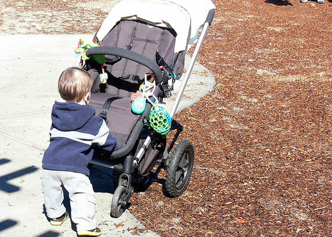 Así que acabamos por llevar el pedazo carrito (porque para ser una silla no es demasiado ligera) de paseo, con el niño en brazos. Esto sucedió hasta que un buen día, en un ataque de lucidez o tras una conexión neuronal inesperada decidimos que el cochecito no lo sacábamos más, que para qué.