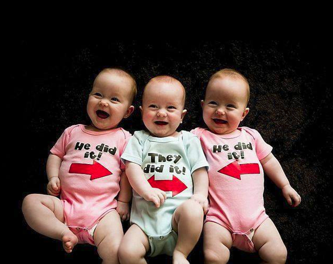 Siempre me he preguntado si el insinto maternal (y paternal, por supuesto), da para distinguir a cada uno de los hijos cuando son gemelos o mellizos muy parecidos. Claro, cuando son trillizos la cosa se complica y más si son idénticos. No sé si yo lo lograría, así que seguramente tendria que recurrir a una solución como la que me he encontrado en estas fotos... ¡práctica y para morir de amor!.