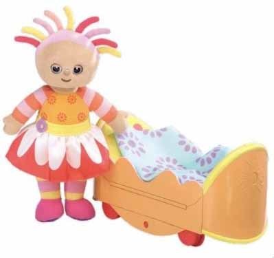 Hay una colección de pequeñas figuras con los seis personajes principales de la serie, un trencito Ninky Nonk como el del jardín, un carrusel con música para encastrar formas, minipeluches y un poco más grandes, los peluches de Igglepiggle y Upsy Daisy con música y sonidos para niños a partir de 18 meses.