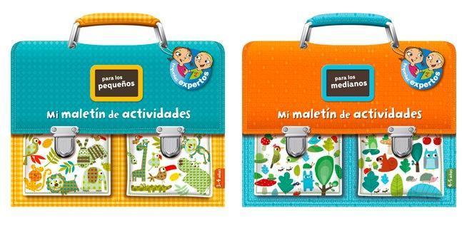 Hay tres maletines diferentes. El de los pequeños (de tres a cuatro años), con 92 páginas y 60 actividades creativas y lúdicas que refuerzan contenidos con los que empiezan a familiarizarse en el cole, como números, letras, formas, colores, espacio, tiempo, dibujo…