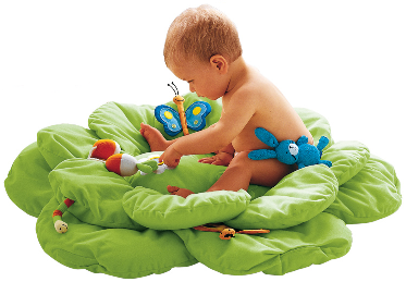 Como puedes ver en la foto, tiene forma de flor o de col, sus hojas o pétalos guateados esconden actividades que estimularán al bebé a ejercitarse, compartir estos momentos con tu pequeño serán inolvidables momentos de aprendizaje para ambos, y él recibirá estímulos afectivos, sensoriales y físicos.
