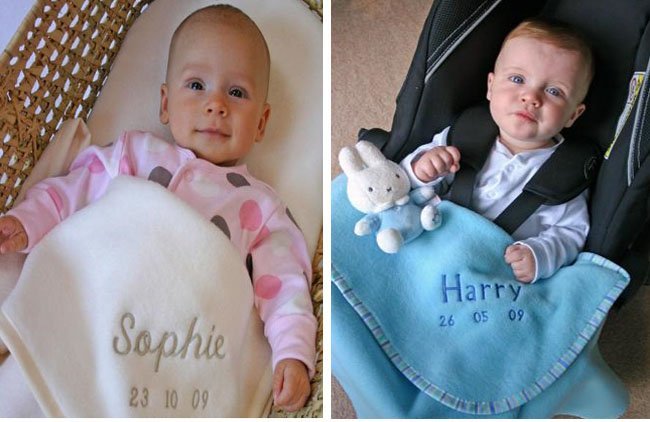 Un artículo que puede ser un bonito regalo para un recién nacido es una mantita personalizada con el nombre del bebé. Además de original es de lo más práctico, pues una mantita es uno de los esenciales en su ajuar. De hecho, la considero uno de los 10 artículos para bebés de los cuales no podemos prescindir.