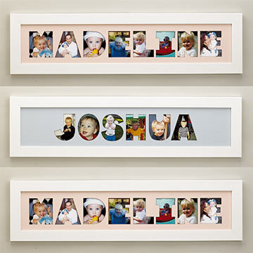 Hoy traemos a las páginas de Bebés y más una idea para decorar las paredes de la habitación infantil (o de otro rincón de la casa): se trata de unos marcos con el nombre del niño escrito con fotografías. Es decir, que las letras están conformadas por fotos