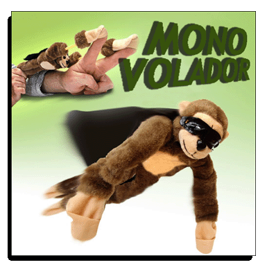 Si las marionetas de dedos son una buena idea de entretener a los más pequeños, estos curiosos ejemplares de monos aún incorporan otra atracción más: vuelan. Se trata de un mono volador, un pequeño peluche con capa y antifaz capaz de sobrevolar nuestro espacio aéreo...