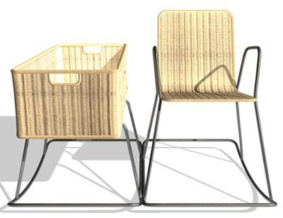 La silla (llamada re-tire) y la cuna (re-babe) que se venden por separado se fijan mediante unas tiras de cuero creando Re-set, para que puedas hamacarte junto a tu bebé.