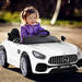 - Coche eléctrico con control remoto: coche Mercedes AMG biplaza con pedal acelerador para niños de entre 3 y 8 años, con puerto USB y MP3. Motor de 12V y batería con autonomía de una hora.