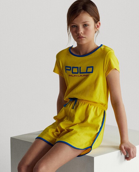 Mono de algodón 100% tipo camiseta y pantalón corto con logo POLO en el frontal. Una prenda deportiva cómoda y colorida, ideal para el verano. En oferta flash del 50% hasta el 26 de abril 62 euros 31 euros.