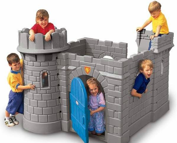 El castillo de juguete de Little Tikes solo se comercializa en Estados Unidos y Canadá por unos 320 euros al cambio. De momento, en casa nos quedamos haciendo castillos con las fundas del sofá y los cojines... También podemos poner banderas y hasta un escudo con el símbolo familiar.