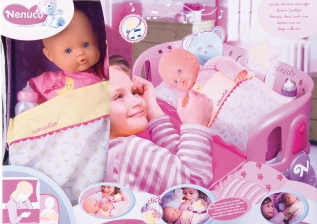 En la misma web de Nenuco (sección “Muñecos”), donde muestran una imagen de la cuna, vemos como eslogan la frase “No quiere dormir solito”, que demuestra cuánto han cambiado las cosas.