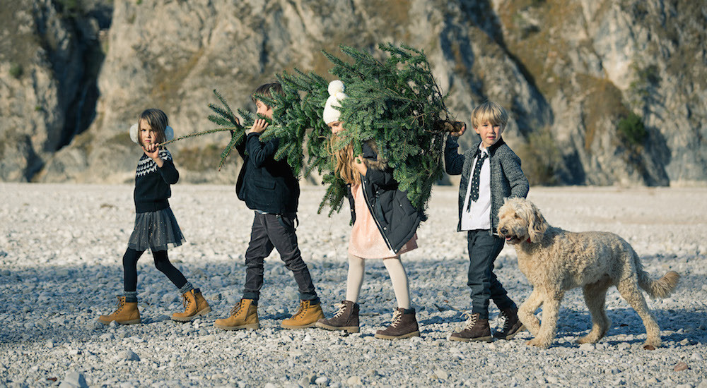 Para los niños hay trajes sastre con pantalones slim en color azul o pantalones jaspeados de lana que se combinan con camisas blancas con pajarita. Para un look más casual opta pantalones skinny combinados con jerséis estampados o cárdigans con diseño jacquard muy invernales.