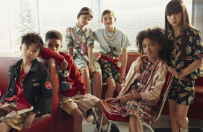 Prendas muy molonas cargadas de estampados gráficos de estilo retro, cómics, flores, print animal, acompañadas de muchas pinceladas de brillo en jerséis y complementos. Todo en colores muy alegres que son los que aportan energía juvenil. Los jerséis de punto tienen como protagonistas a Popeye y Mickey Mouse, ofreciendo así un toque de encanto y humor a la colección.