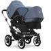 Podemos utilizarlo con una silla y un capazo por lo que sería útil para niños de distintas edades, es decir, ya no solo gemelos. Uno de los beneficios de este carro es que puedes plegarlo con los capazos puestos algo que te ahorrará mucho tiempo de montaje. Una vez que los pequeños pasen a la silla deberán ir mirando al frente y como ocurría en los casos anteriores, la sombrilla o los sacos son extras que tendrás que comprar aparte. Mide 65 cm. de ancho, un poquito más que el anterior pero que sigue pasando perfectamente por puertas sin problema.
