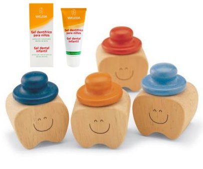Buscando un producto de estas características, me ha gustado la pasta de dientes para niños de Weleda, con una fórmula natural a base de caléndula para los dientes de leche. No representa ningún riesgo en caso de ingestión accidental, aunque siempre hemos de poner poca cantidad e ir enseñado a los niños a que la crema dental no se traga.