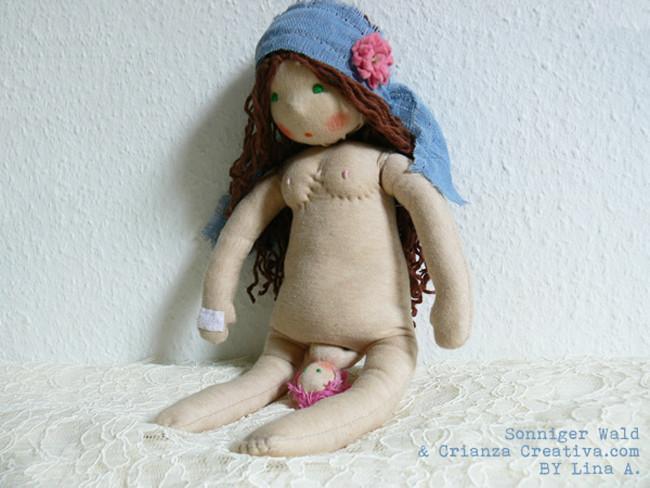 Por eso me han llamado la atención estas preciosas muñecas de embarazo, parto y lactancia hechas a mano por Lina de Sonniger Wald. Para darles vida utiliza telas nuevas y recicladas 100% de algodón y materiales como fieltro, lana, hilo y algunos detalles en madera.
