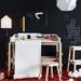 Nos gusta además porque debajo del tablero abatible se esconde un compartimento grande (en el que libretas o folios tamaño A3) y otro más pequeño para bolígrafos y lápices.
