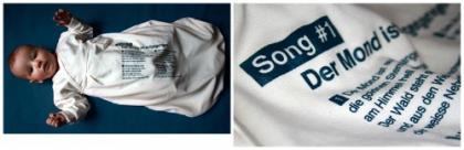 A lo mejor no te viene tan bien si no sabes alemán, pero la idea de estampar canciones para bebé en el saco de dormir me ha parecido muy original.