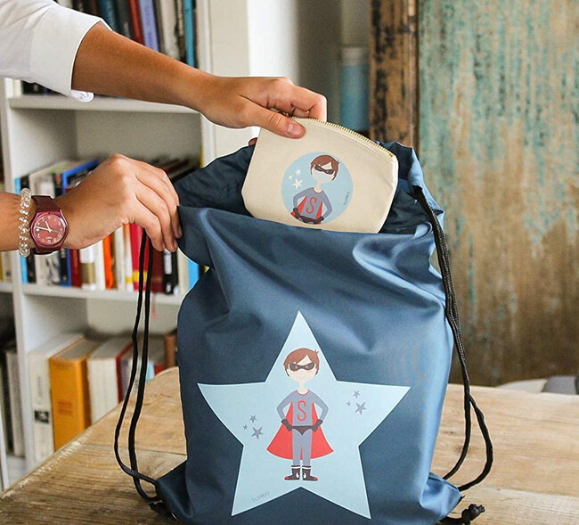 Este estuche está fabricado con un 80 % poliuretano y 20 % poliéster, así que es lavable y reutilizable. Tiene un bonito estampado de dinosaurios, cremallera y asa para cargar.