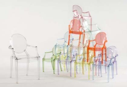 Personalmente estas sillas transparentes de colores me han gustado mucho, aunque son de un prestigioso diseñador francés, Philippe Starck, que no augura un precio muy económico... El modelo acaba de ser presentado, se llama Loulou Ghost y es la versión para niños de otro modelo anterior destinado a los mayores.