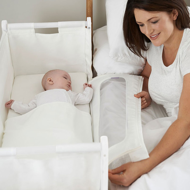 Pero si lo que quieres es compartir la habitación pero no que el bebé duerma en la cama con vosotros (no se recomienda en bebés menores de tres meses), las cunas colecho son una práctica solución para tener al bebé cerca pero en su propia cuna adosada a la cama de los padres. La cuna de colecho SnüzPod está fabricada en Londres, es apta para bebés hasta los seis meses y puede usarse tanto como cuna independiente, como cuna de colecho o como moisés tradicional.