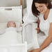 Es una cuna práctica y versátil, ya que cuenta con tres diferentes usos. Puedes quitarla de la base y utilizarla como moisés, con la base, como minicuna y adosándola a la cama bajando las cremalleras laterales, permite tener a tu bebé al lado sin necesidad de levantarte de la cama.