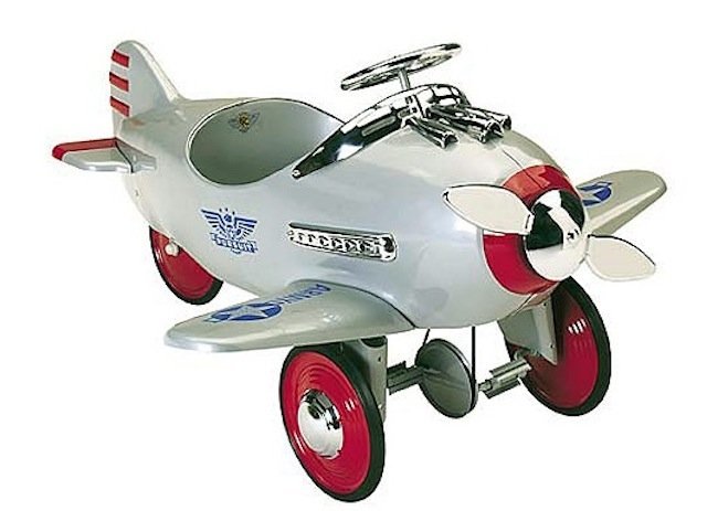 Los balancines con forma de caballito están demasiado vistos al lado de este invento para entretener a los peques. Se trata de Silver Pursuit Pedal Plane, la primera avioneta de los niños, que también puede servir de balancín.