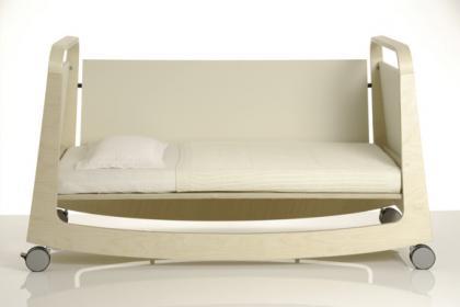 Suiko es un mueble muy interesante para tener en cuenta, pues cumple tres funciones. Se usa como cuna mecedora o con ruedas y con altura regulable durante la primera etapa del bebé, luego se quita un lateral o los dos para convertirla en cama y después, cuando el niño pasa a la cama grande, también se transforma en sillón.