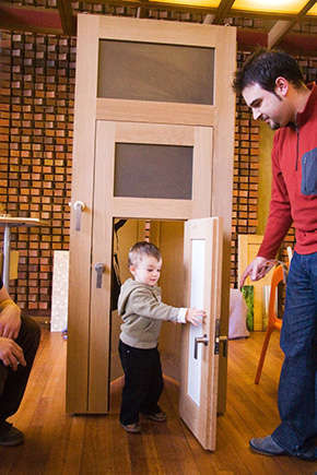 Imagino que habrá cierta demanda para algunos hogares exclusivos, y seguro que hará mucha gracia a los peques, pero en la fotografía vemos la puerta ThreeStyle de exposición, no instalada en una casa.