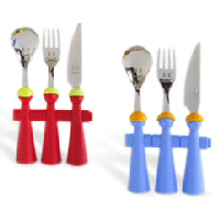 Estos cubiertos de la firma italiana Trebimbi, me parecen demasiado cool. Están hechos para despertar el interés de los niños en la comida.