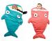 Encontramos más modelos y colores diversos, tiburones y orcas con forros estampados y tienen en común esas fauces que parecen tragarse al bebé. El saco tiburón para abrigar al bebé es un diseño de Baby Bites, está elaborado en 100% algodón y cada modelo cuesta 66 euros.