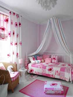 Si queremos que las cortinas, los cojines, las sábanas, la pantalla de la lámpara e incluso la pintura de las paredes combinen entre sí, una práctica solución es encargarlo todo a Bedroom-in-a-box, que como su nombre indica es una casa de decoración que se encarga de farbicar y enviar todos estos componentes en una gran caja según las medidas que tú hayas indicado y el modelo que hayas escogido.