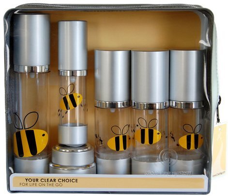 Una opción interesante para poder llevar todos esos líquidos en el equipaje de mano sería este set de botellitas para viaje que, ordenadas en una bolsa transparente, pueden contener todos los líquidos necesarios para el aseo del bebé (o nuestro). El neceser, con 7 recipientes de distintos tamaños y adornados con un bonito dibujo a elegir entre distintos modelos (abejas, ranas, mariquitas, corazones, topos o la luna y las estrellas), cuesta unos 31 euros al cambio.