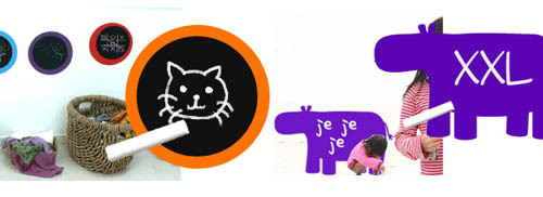 Son vinilos con diversas formas y colores en cuya superficie se puede escribir con tiza, limpiar con un paño húmedo y volver a escribir.