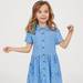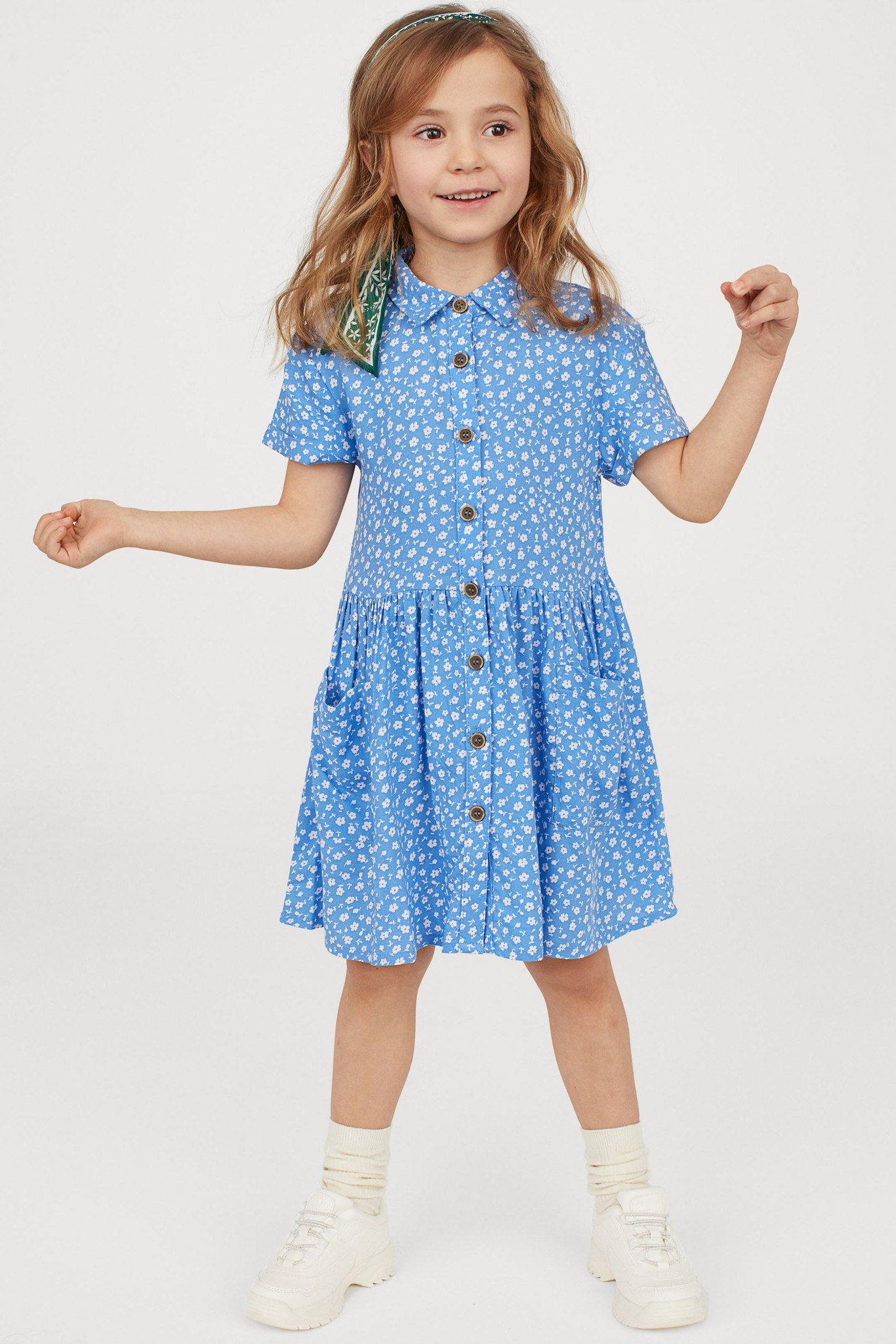 Vestido camisero azul de print flores blancas de H&M. Su precio era de 14,99 euros y ahora es de 7,99 euros.