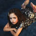 Vestido de lentejuelas doradas de manga corta y falda de volantes. Su precio es de 29,95 euros, 23,96 euros.