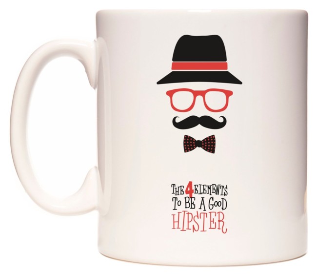 "Los cuatro elementos para ser un buen hipster" nos esperan en esta divertida taza para el desayuno, el té o el café con leche. Impresa por ambos lados y apta para el lavavajillas y microondas. En Amazon por 19,99 euros.