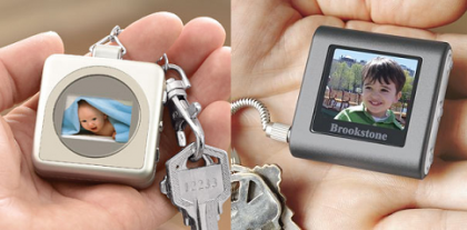 Se trata de un llavero electrónico en el que almacenar fotografías digitales, hasta 56 fotos de tus pequeños que podrás transferir a través del USB y un ordenador. Cuenta con una memoria flash interna de 8 MBytes y una pantalla LCD de 1,4 pulgadas, tiene un coste de 36 euros.