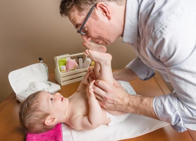 Si observamos que el bebé intenta hacer caca, podemos ayudarle tumbándolo suavemente boca arriba y le flexionando sus piernas sobre la tripita, presionando levemente, como se suele hacer para que expulse los gases. Si le quitamos el pañal y realizamos esta maniobra, es posible que la postura le anime a empujar para evacuar.