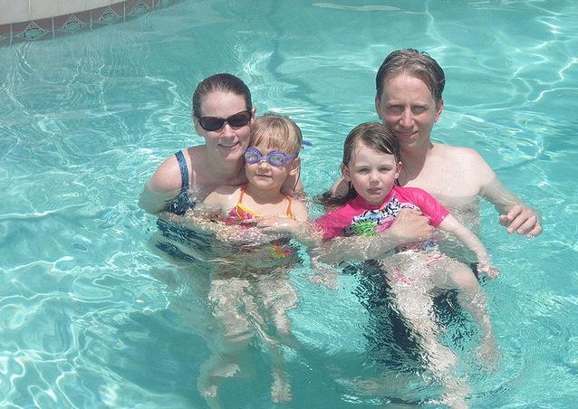 Baño en la piscina con bebés