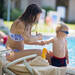 Es preferible hacerlo tranquilos en casa, donde hay menos distracciones, que luego en la piscina o en la playa cuando el niño está ansioso por irse a jugar. Así, podremos aplicar la crema por todas las partes del cuerpo sin que el niño se nos "escape" a cada rato.