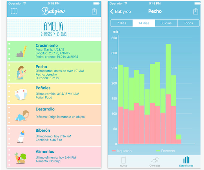 De cada rutina, la app elabora gráficos y tablas que te permitirán llevar un mejor control de ellas. Como por ejemplo, el tiempo que le diste de cada uno de los pechos en los últimos días.