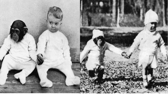 Al pensar que el niño estaba en pleno proceso de animalización, Kellogg detuvo el experimento. No sabemos qué hubiera pasado si el chimpancé hubiera acompañado al bebé desde su nacimiento, o si el proceso se hubiera alargado, lo cierto es que me parece impresionante la capacidad de imitación entre el pequeño y la cría.