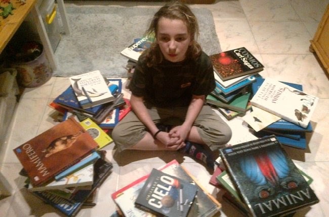 En la foto está mi hijo Héctor con los libros de ciencias que el año pasado leyó, pues es un tema que le apasiona, tanto que este año va a hacer un curso a distancia en la Universidad de Edimburgo sobre Astrobiología. Es lo que tiene seguir una pasión, te conviertes en un experto y lo disfrutas, sin más límite que el que tu encuentres en ti mismo.