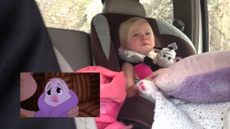 Raegan fue grabada por su madre cuando iba en el coche viendo unos dibujos animados en la que las Chipettes de Alvin y las Ardillas cuidan a un pequeño pingüino que se ha perdido de sus padres.