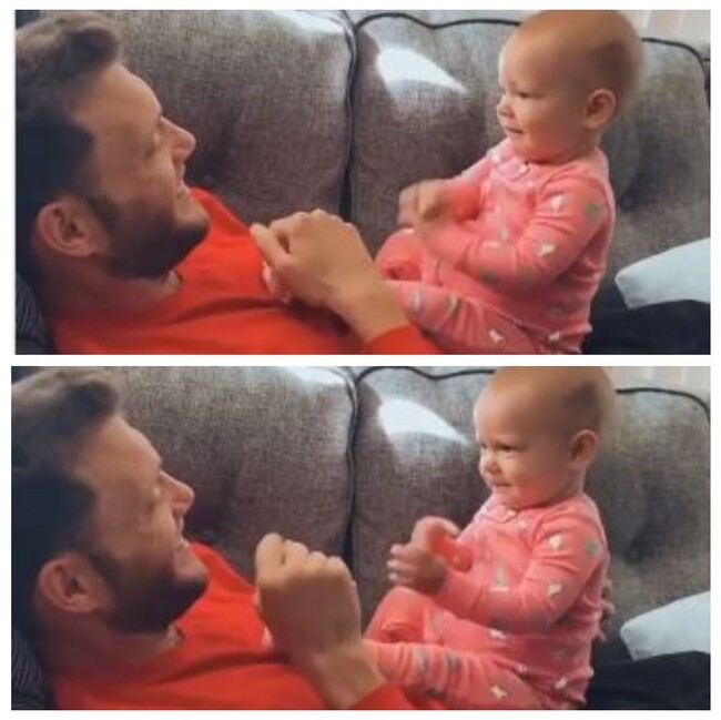 En las imágenes puede verse a la bebé muy atenta a los gestos que su papá le hace con las manos, hasta que en un momento de la conversación parece querer responderle imitando sus movimientos.